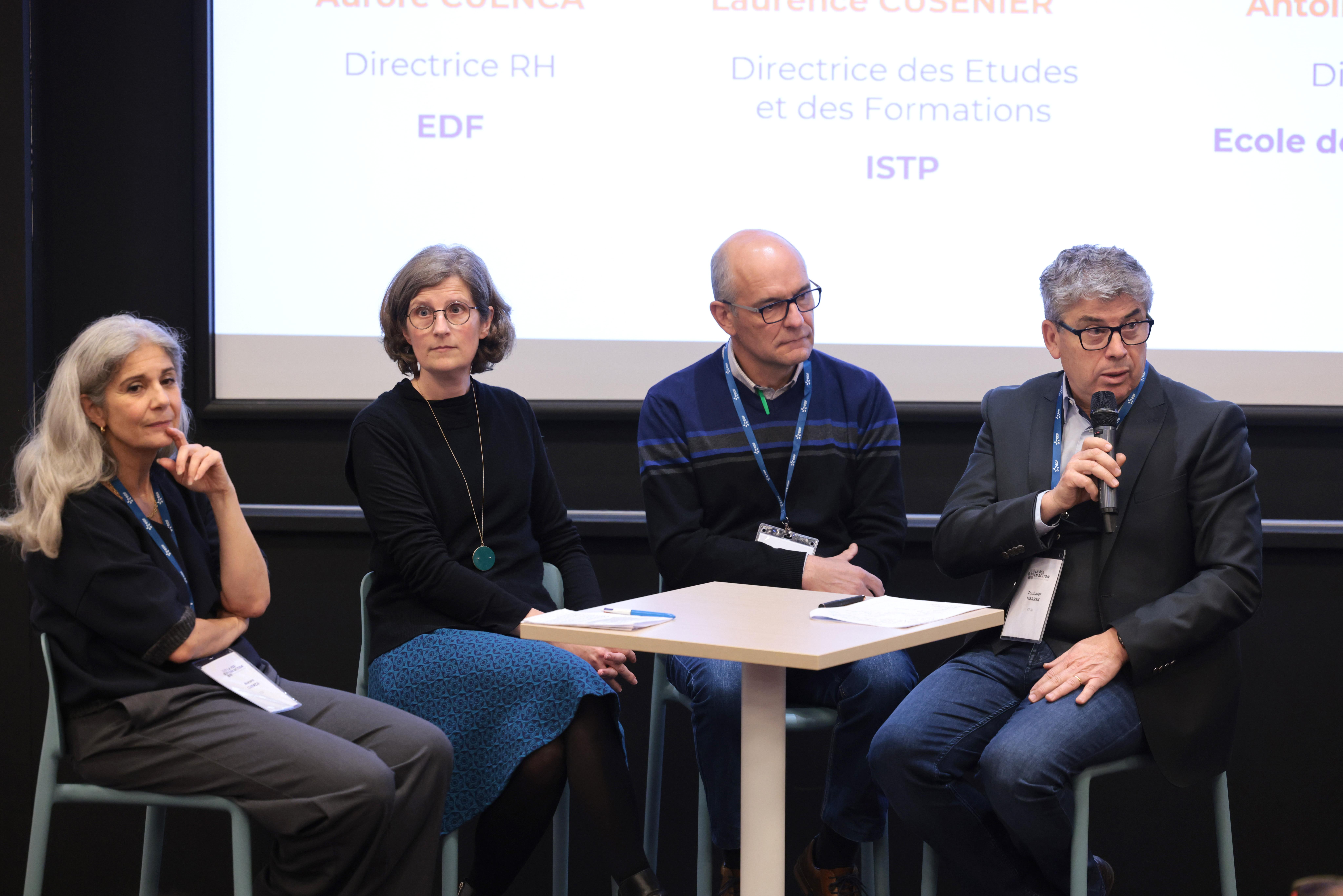 Dans un second temps, la réflexion s’est portée autour de la consolidation des parcours. Laurence Cusenier, directrice des études et formations à l’ISTP, a rappelé que l’alternance est un puissant levier d’inclusion « Nous avons voulu créer une seconde voie pour permettre à des jeunes de devenir ingénieurs. L’alternance, c’est la promotion sociale en action ». Le collectif est pour elle une force, un leitmotiv partagé par Antoine Martin, directeur de l’Association Forézienne d’Écoles de Production qui oeuvre au quotidien auprès de jeunes en perte de motivation scolaire. « Le faire pour apprendre est notre philosophie. Dans nos ateliers, les jeunes produisent des objets pour des clients réels. Ils reprennent confiance, trouvent du sens, et valident un diplôme. »