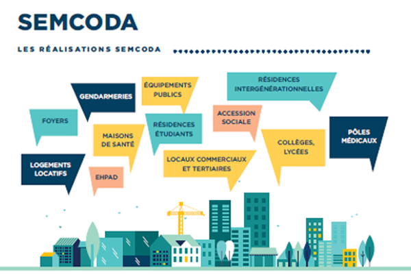 La SEMCODA propose des parcours résidentiels complets, accompagne la création d’équipements publics et privés, développe l’offre de soins et d’espaces commerciaux… Son réseau d’agences, ses services d’assistance et de maintenance, et son partenariat avec les élus font d’elle un outil d’aménagement incontournable et responsable pour chaque commune, chaque quartier, chaque population.